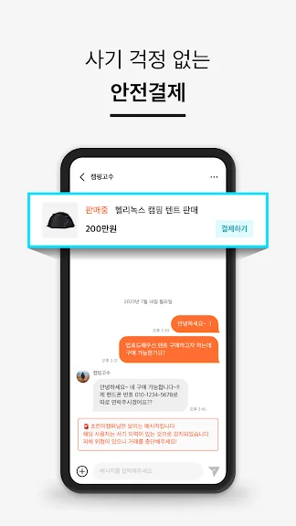 당근 내 채팅으로 자유로운 채팅이 가능해요. 자유로운 채팅인 만큼 안전을 위해 최선을 다하고 있어요.