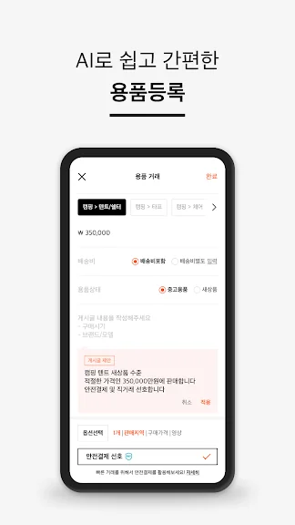 • [안전거래 시스템]으로 사기 계좌 조회는 물론 판매자 본인 인증까지. 더욱 안심하고 거래할 수 있어요.