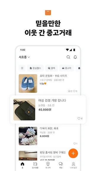 동네 주민들과 가깝고 따뜻한 직거래를 지금 경험해보세요. 포장, 택배비 없이 당신 근처에서 쉽고 편하게 거래하세요.
