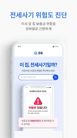 특히 전세 사기 예방에 도움이 되는 '보증금 리포트' 기능이 포함되어 있어, 전세나 월세 계약 시 깡통전세를 미리 파악할 수 있습니다. 이 기능은 보증금과 집 주소만 입력하면 리포트를 생성해주어 사기 예방에 큰 도움을 줍니다.