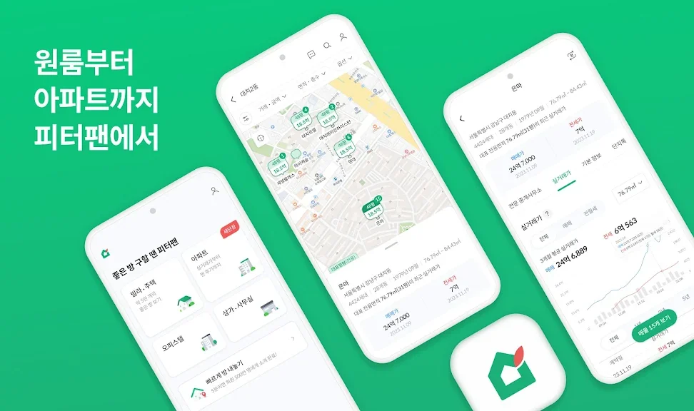 피터팬의 좋은방 구하기는 대한민국 최대 부동산 직거래 플랫폼으로, 4억 명의 방문자와 500만 명의 회원이 이용하는 인기 서비스입니다. 이 어플은 아파트, 빌라, 원룸, 오피스텔 등 다양한 유형의 매물을 제공합니다.