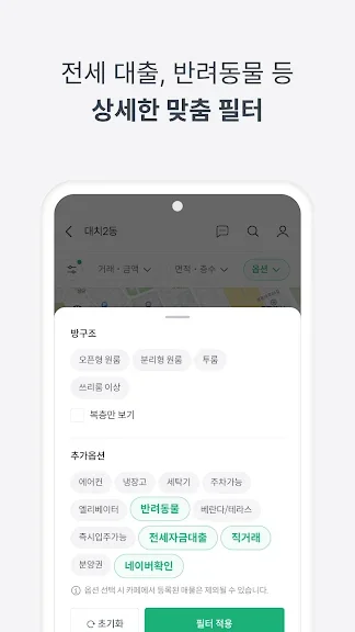 또한, 전세대출이나 반려동물 등 세부 조건에 맞는 매물을 쉽게 찾을 수 있는 맞춤형 필터 기능도 제공합니다. 다양한 옵션을 통해 자신에게 딱 맞는 방을 찾아보세요.