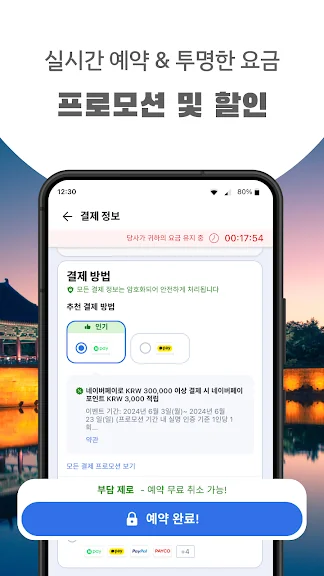 결제는 네이버페이, 카카오페이 등 다양한 방법을 제공해 안전하고 신속하게 완료할 수 있으며, 24시간 다국어 상담을 통해 언제든지 지원을 받을 수 있습니다. 아고다와 함께 더 편리하고 저렴한 여행을 시작해 보세요.