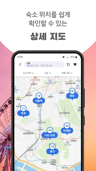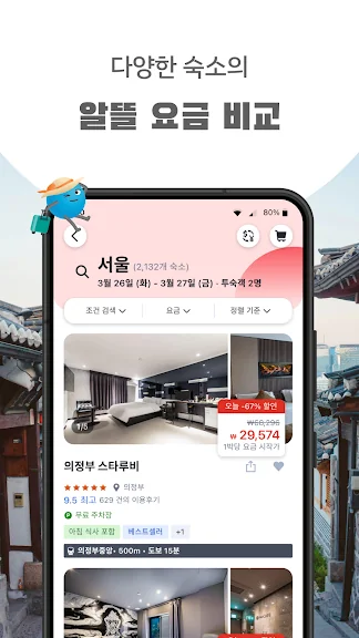 여행지를 찾는 데 필요한 모든 정보와 조건을 세밀하게 필터링할 수 있어, Wi-Fi, 요금, 후기 평점 등 원하는 조건에 맞는 최적의 숙소를 찾을 수 있습니다. 또한, 지도에서 숙소 위치를 확인하거나 관심 숙소를 저장하여 가족, 친구들과 공유할 수도 있습니다.