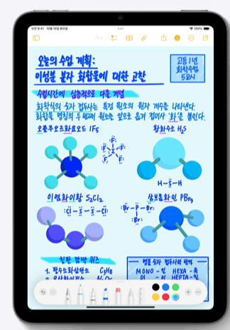Apple Pencil은 아이패드 미니와 함께 사용하면 정밀한 필기와 드로잉 작업을 지원합니다. 게다가, 여러 도구 간의 전환이 간편하여 창작 과정에 많은 도움이 됩니다.
