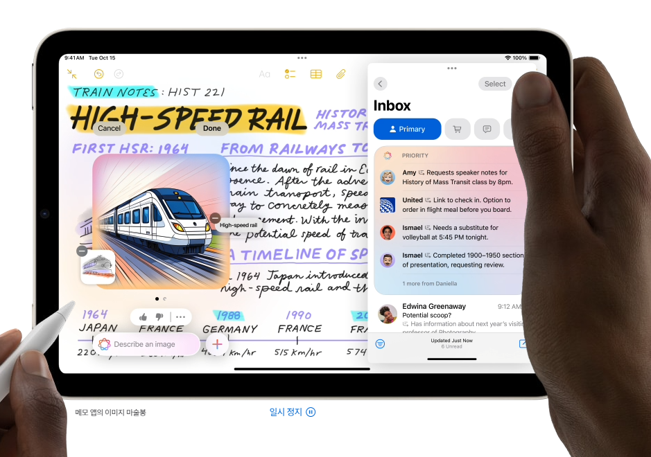 또한, Siri의 맥락 인식 검색 기능을 활용하면 원하는 정보를 빠르고 쉽게 찾을 수 있어 작업 시간이 단축됩니다. Apple Intelligence는 사용자 데이터를 안전하게 관리하면서도 아이패드 미니의 활용도를 극대화하는 똑똑한 도구로, 모든 연령대의 사용자에게 유용한 디지털 경험을 제공합니다.