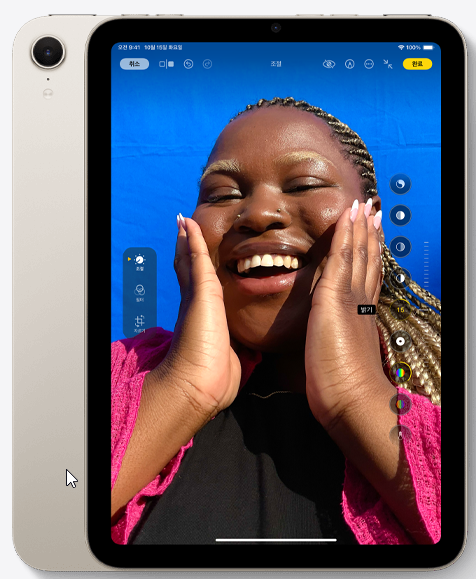 이 태블릿은 21.0cm 크기의 Liquid Retina 디스플레이를 장착하고 있어 뛰어난 시각적 경험을 제공합니다. True Tone 기술과 P3 색 영역 지원으로 밝고 생생한 화질을 제공하며, 주변 조명에 따라 조도와 색감을 자동으로 조정해 어느 환경에서도 쾌적한 화면을 유지합니다. 이를 통해 업무, 공부, 또는 창작 활동 등 다양한 작업을 효율적으로 수행할 수 있습니다.