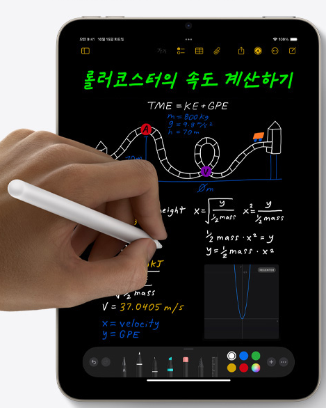 Apple Pencil은 아이패드 미니와 함께 사용하면 정밀한 필기와 드로잉 작업을 지원합니다. 게다가, 여러 도구 간의 전환이 간편하여 창작 과정에 많은 도움이 됩니다.