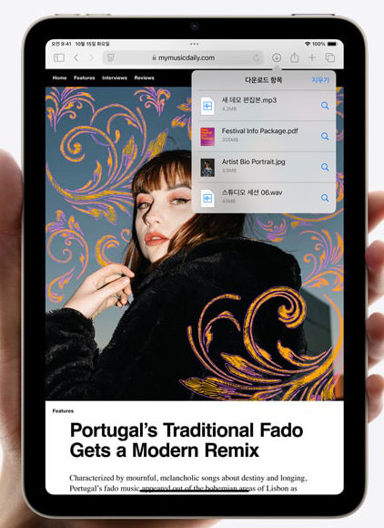 아이패드 미니는 콤팩트한 디자인과 경량의 알루미늄 외장으로 제작되어 휴대성이 뛰어납니다.