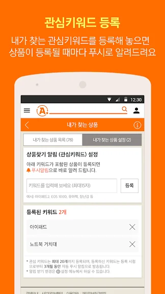 - 알림 : 상품 찾기 및 판매활동 관련 알림