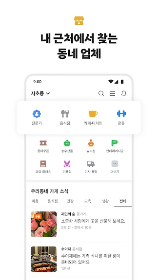 내 근처 가게 정보가 궁금할 때 손쉽게 찾을 수 있어요. 우리 동네 이웃들의 추천 후기를 확인하고 동네 곳곳의 가게들을 찾아보고 이용할 수 있어요.