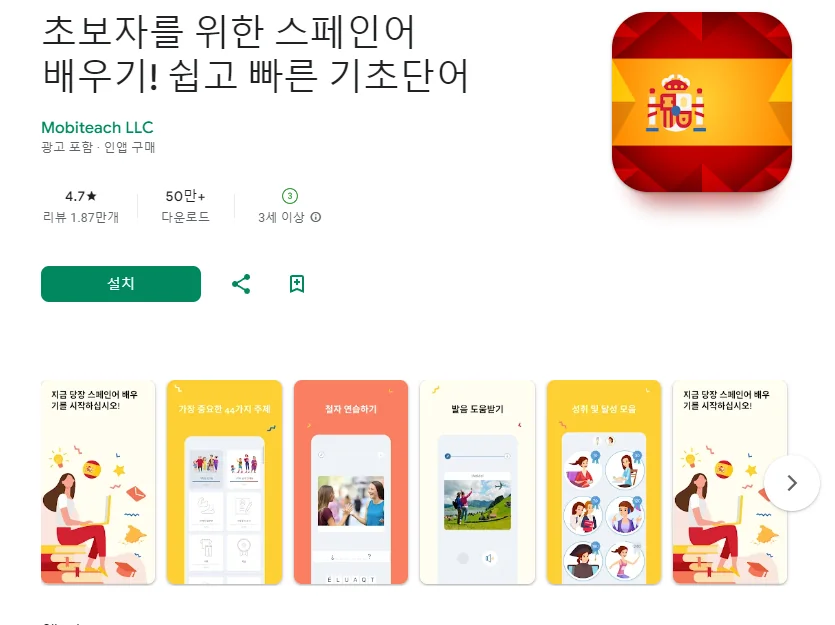 3. 초보자를 위한 스페인어 배우기! 쉽고 빠른 기초단어 어플 소개