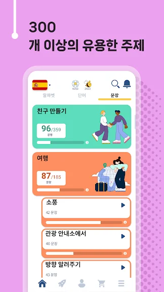 공부하는데 특정 토픽이 필요한가요? 스페인어 공부에 필수적인 다양한 토픽을 직접 선택해 학습할 수 있습니다.