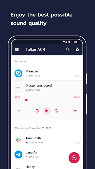 Talker 통화 녹음기 ACR을 사용하면 안드로이드 장치에서 녹음할 때 가장 선명한 음질을 보장할 수 있습니다.