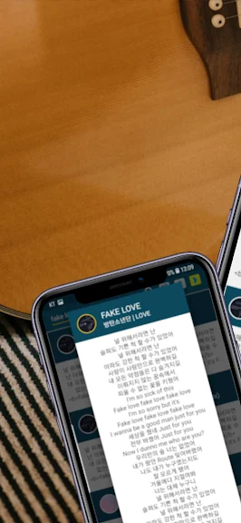 들리는 노래에 맞춰 제공되는 가사를 따라 부를 수 있습니다.
