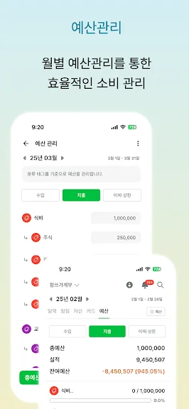 - 이번 달 나갈 지출 예정 금액을 확인하고, 실시간 자산을 살피면서 마이너스에 미리 대비하세요