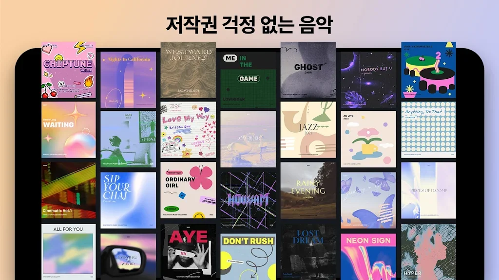 + 저작권 걱정 없이 상업적/비상업적으로 사용 가능한 1,000개 이상의 다양한 무드의 배경음악이 준비되어 있으며, 계속해서 업데이트 됩니다.