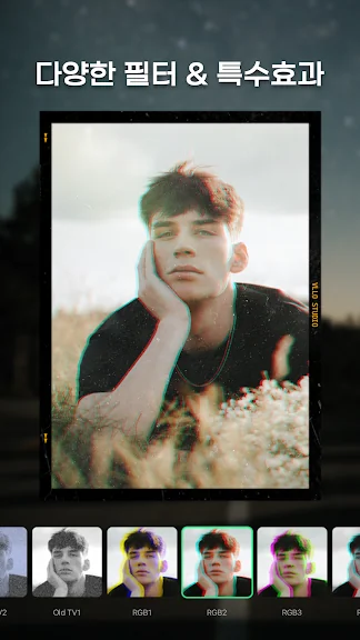 - 영화 스타일의 필터와 멋진 효과. 레트로, 글리치, 고스트, 몬스터 등.