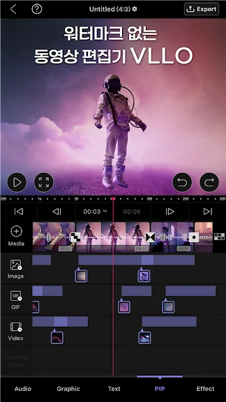 + PIP기능으로 영상 위에 영상이나 사진, GIF를 올리세요.