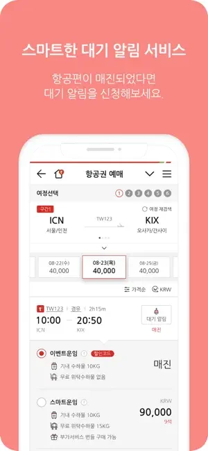 2) 아이폰 티웨이항공 어플 스크린샷