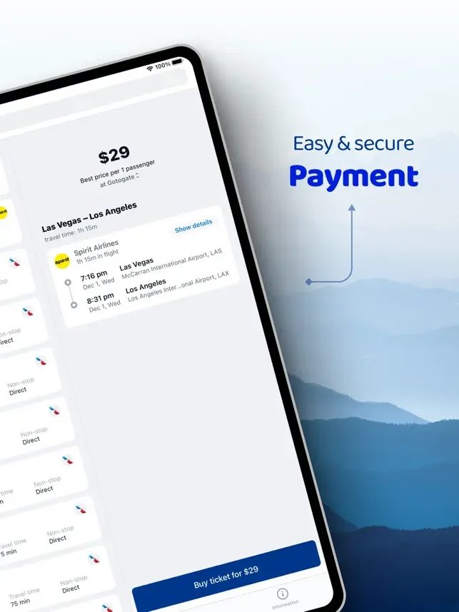 항공편 예약 - 거래 및 할인 앱으로 세계를 여행하세요. 우리와 함께 최고의 국제, 국내 및 막바지 항공편을 찾으십시오! 클릭 몇 번으로 모든 항공권 예약 사이트를 검색하고 비교하세요.