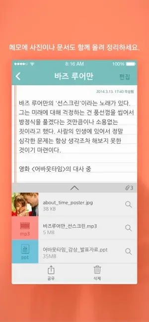 어디서나 메모할 수 있습니다.