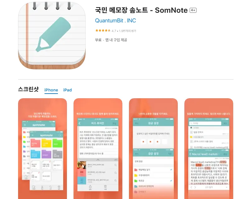아래는 아이폰 국민 메모장 솜노트 - SomNote 어플 스크린샷 정보입니다. 국민 메모장 솜노트 - SomNote 어플 스크린샷 정보를 확인하고 싶으신분은 아래를 참고하시기 바랍니다.