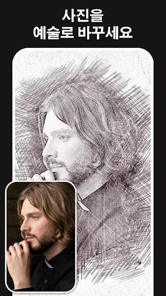 아래는 연필 스케치 사진 편집기 어플에 대한 스크린샷 정보입니다.