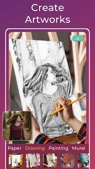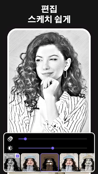 "스케치", "낙서", "해치"의 세 가지 독특한 스타일을 살펴보세요. 각 스타일은 다양한 유형의 사진을 향상시키기 위해 맞춤화되었습니다. 인물 사진, 사물, 자연 경관 등 무엇을 캡처하든 당사의 다재다능한 스타일은 놀라운 결과를 보장합니다. 사용자 정의 가능한 사진 프레임을 적용하여 스케치에 손쉽게 마무리 작업을 추가하세요.