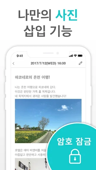 이 잠금 기능이 있는 다이어리를 사용하면 다른 사람이 나의 소중한 기록을 볼 수 없도록 안전하게 보호할 수 있습니다.