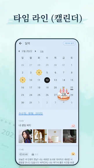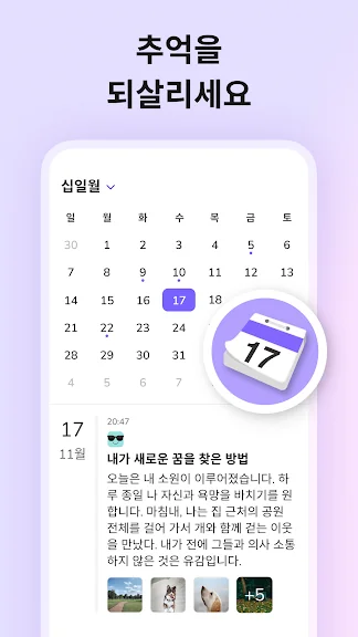 캘린더: 꼬박일기로 중요한 날짜를 쉽게 찾아보고, 캘린더를 통해 특별한 이벤트나 기념일을 기억하세요.