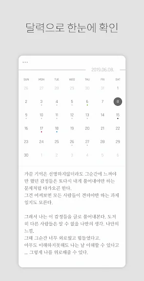 매일 일기를 작성하더라도 원하는 기록을 손쉽게 검색할 수 있습니다.