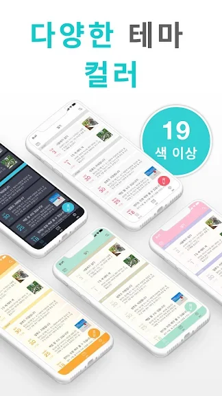 19가지 테마 컬러 중에서 원하는 디자인을 선택하여 나만의 개성 있는 다이어리를 만들 수 있습니다.