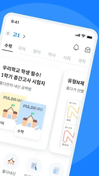 아래는 풀다 - 내신, 모의고사, 기출, 수능 어플에 대한 스크린샷 정보입니다.