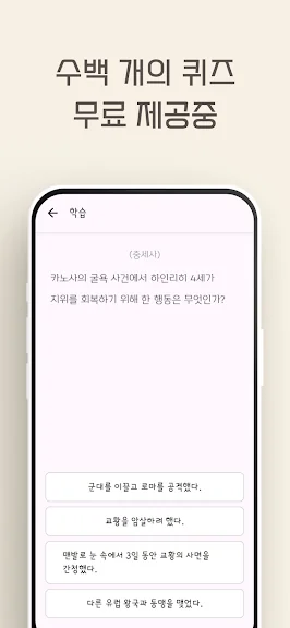 ◾ 수백 개의 세계사 사건과 인물을 랜덤으로 제공하여 매번 새로운 학습 경험 제공.