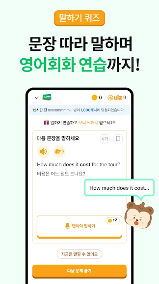 - 말하기 퀴즈를 통해 자연스럽게 영어회화 실력 향상!