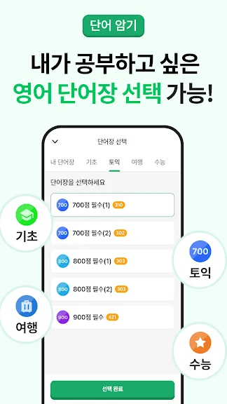 - 기초 영단어, 토익 영단어, 수능 영단어, 여행 영단어 등 다양한 영어단어 콘텐츠!