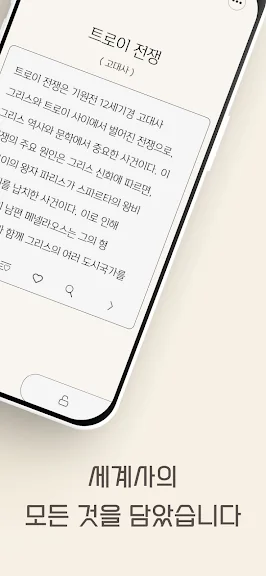 스마트폰을 켜는 순간, 세계사의 한 페이지가 펼쳐집니다. 별도의 시간을 들이지 않아도, 세계사 통달이 가능해집니다. 하루 수십 번씩 스마트폰을 확인하는 습관을 활용하여, 자투리 시간을 학습의 기회로 바꿔보세요.