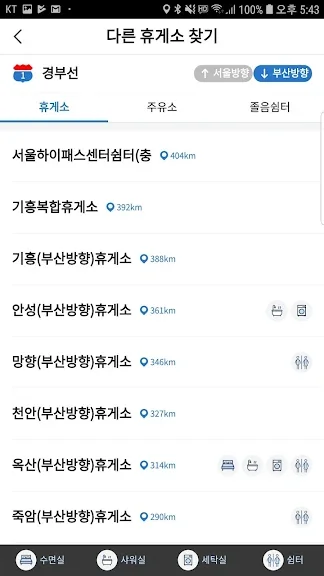 - 노선별 휴게소/주유소/졸음쉼터 검색