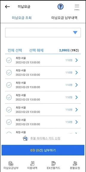 - 미납통행료 조회 및 납부