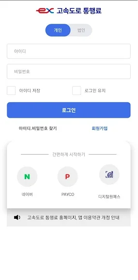 보다 빠르게 통행료 조회가 가능하며, 개인회원 뿐만 아니라 법인회원 가입자도 사용 가능합니다.