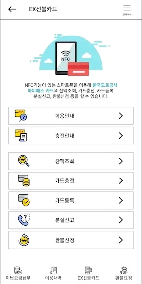 - ex-카드 충전, 잔액확인, 이용내역 조회