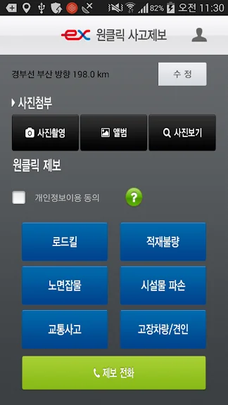 고속도로상의 여러 상황을 클릭한번으로 제보할 수 있습니다.