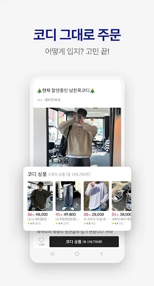 미니멀, 캐주얼, 비즈니스룩, 스트릿, 유니크, 러블리 패션까지 내가 원하는 스타일로 정렬하고 인스타처럼 편하게 옷 구경하세요! 맘에 드는 코디나 제품은 즉석에서 바로 구매 가능!