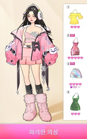 의상, 헤어스타일, 메이크업, 액세서리, 배경 등 우리가 제공하는 풍부한 자원을 사용하여 당신만의 패션 스타일을 디자인하세요.